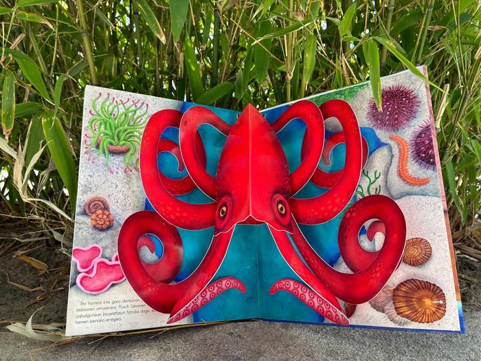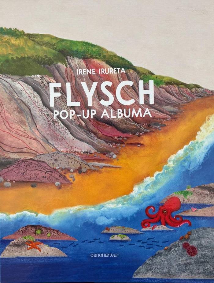 Hay muchos libros de imágenes desplegables traducidos al euskera, para disfrute de los más pequeños, pero este "Flysch pop-up" que se presentará el jueves es el primero realizado íntegramente en euskera en Euskal Herria. La editorial denonartean es navarra; la ilustradora e ingeniera del papel, Irene Irureta, y el guionista, Asier Hilario, son guipuzcoanos.