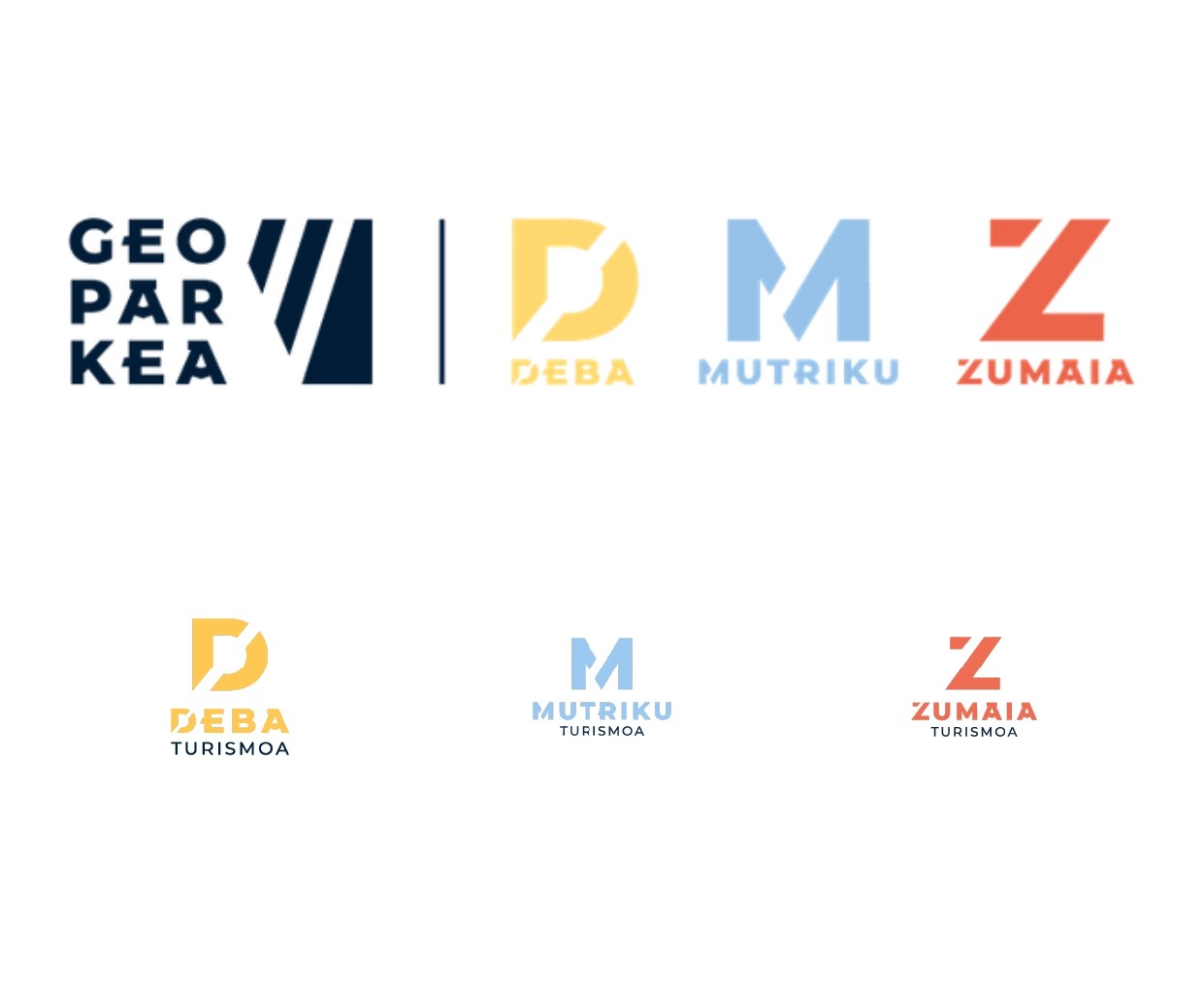 El nueva marca se inspira en los elementos que definen la identidad de los municipios. Deba se corresponde con el color “amarillo turbidita” en referencia al flysch; Mutriku se representa con el azul ligado a su esencia marinera; y Zumaia, con un naranja que recuerda el color del flysch de Algorri.