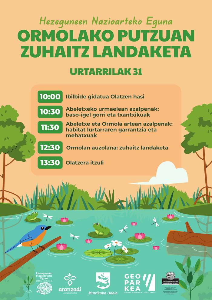 Las personas que quieran participar en la plantación tienen una cita a las 10:00 en Olatz, desde donde subirán hasta Ormola. En el camino se detendrán en el estanque de Abeletxe y analizarán la importancia y las amenazas de este hábitat terrestre. Posteriormente, hacia el mediodía, se realizará una plantación de árboles en auzolan en el pozo de Ormola y vuelta a Olatz para la hora de comer.