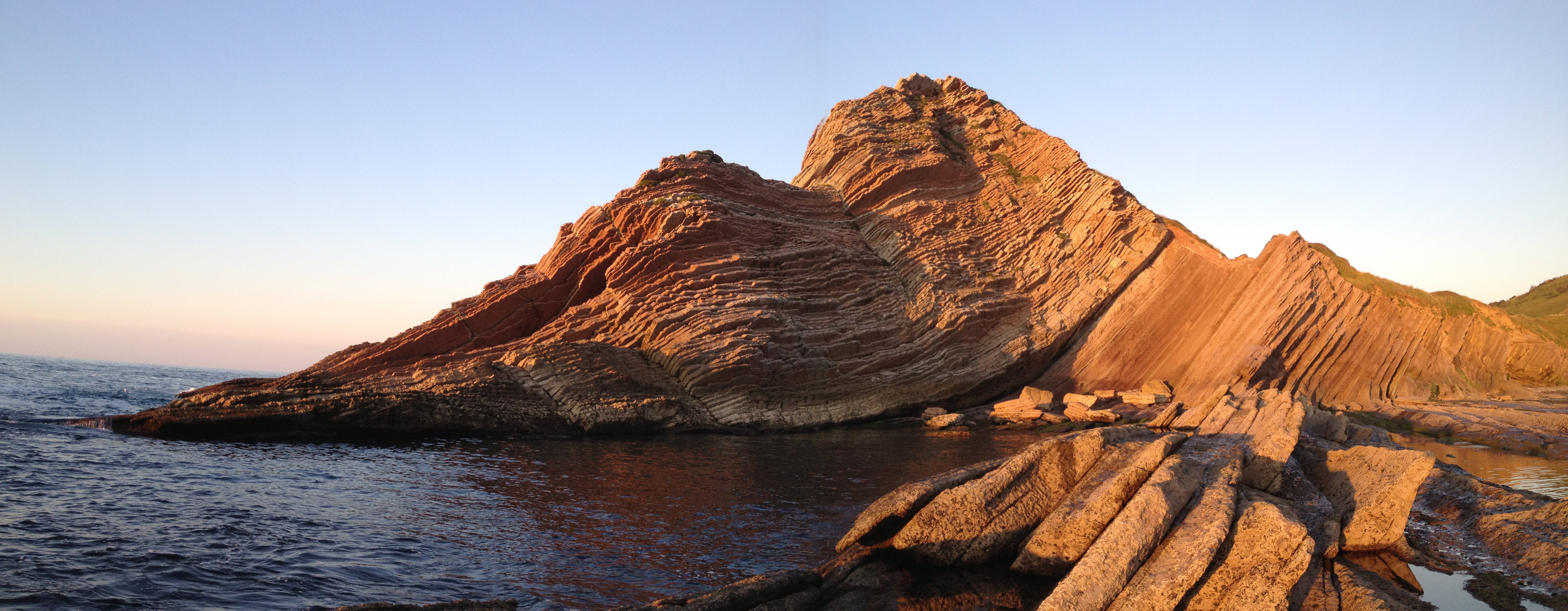 L’ouverture du golfe de Gascogne s’est ralentie et le Géoparc est devenu un fond marin profond et tranquille où se sont déposées horizontalement les couches de calcaire, de marne et de grès qui forment le flysch que nous pouvons voir aujourd’hui entre Deba et Zumaia. Cette accumulation gigantesque de fonds marins dépassait les 3 000 m d’épaisseur. Elle ressemble à un grand livre où nous pouvons lire, page par page, plus de 50 millions d’années consécutives de l’histoire de la Terre. Les couches du Flysch de Zumaia ont attiré des chercheurs du monde entier car elles ont été le théâtre d’événements majeurs tels que l’extinction des dinosaures, le maximum thermique du début de l’Éocène ou encore les cycles astronomiques de Milankovitch. En 2010, l’IUGS a posé deux clous d’or qui définissent deux stratotypes de limite. C’est notre grand joyau géologique.