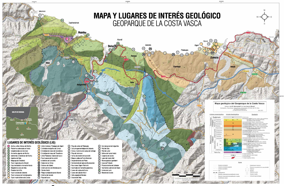 Le patrimoine géologique du Géoparc de la Côte Basque est constitué par 65 sites d’intérêt géologique (SIG). Les inventaires de sites d’intérêt géologique sont essentiels à la gestion et la conservation de notre géodiversité. Pour réaliser l’évaluation quantitative des Géosites, Geoparkea a adopté une méthodologie propre qui analyse l’intérêt scientifique, le potentiel d’utilisation et la vulnérabilité de chaque site avant de proposer des mesures de gestion pour chacun d’eux.